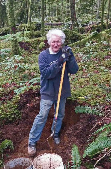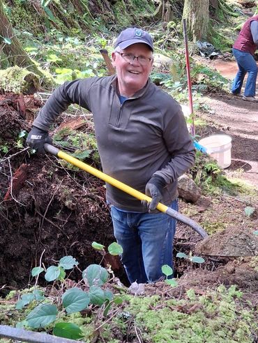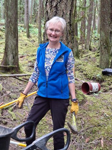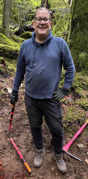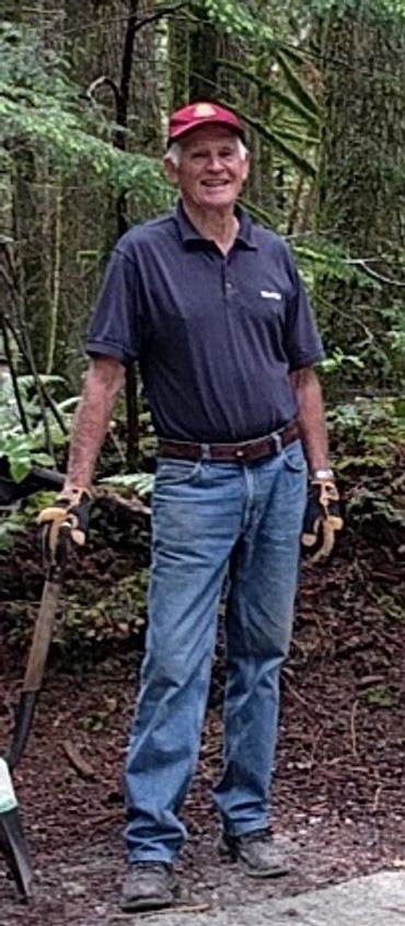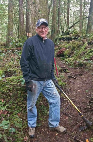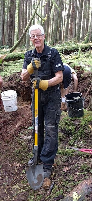 The Trailbuilders have been building trails for 25 years, first in the Sechelt Heritage Forest and later in the Hidden Groves. They are constantly upgrading the trails to be smoother, last longer and be environmentally sensitive. They also played a major role in the design and construction of the parking lot, kiosk, signage and both accessibility trails.